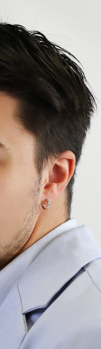Pendiente único aro con diamantes en oro blanco 18 quilates