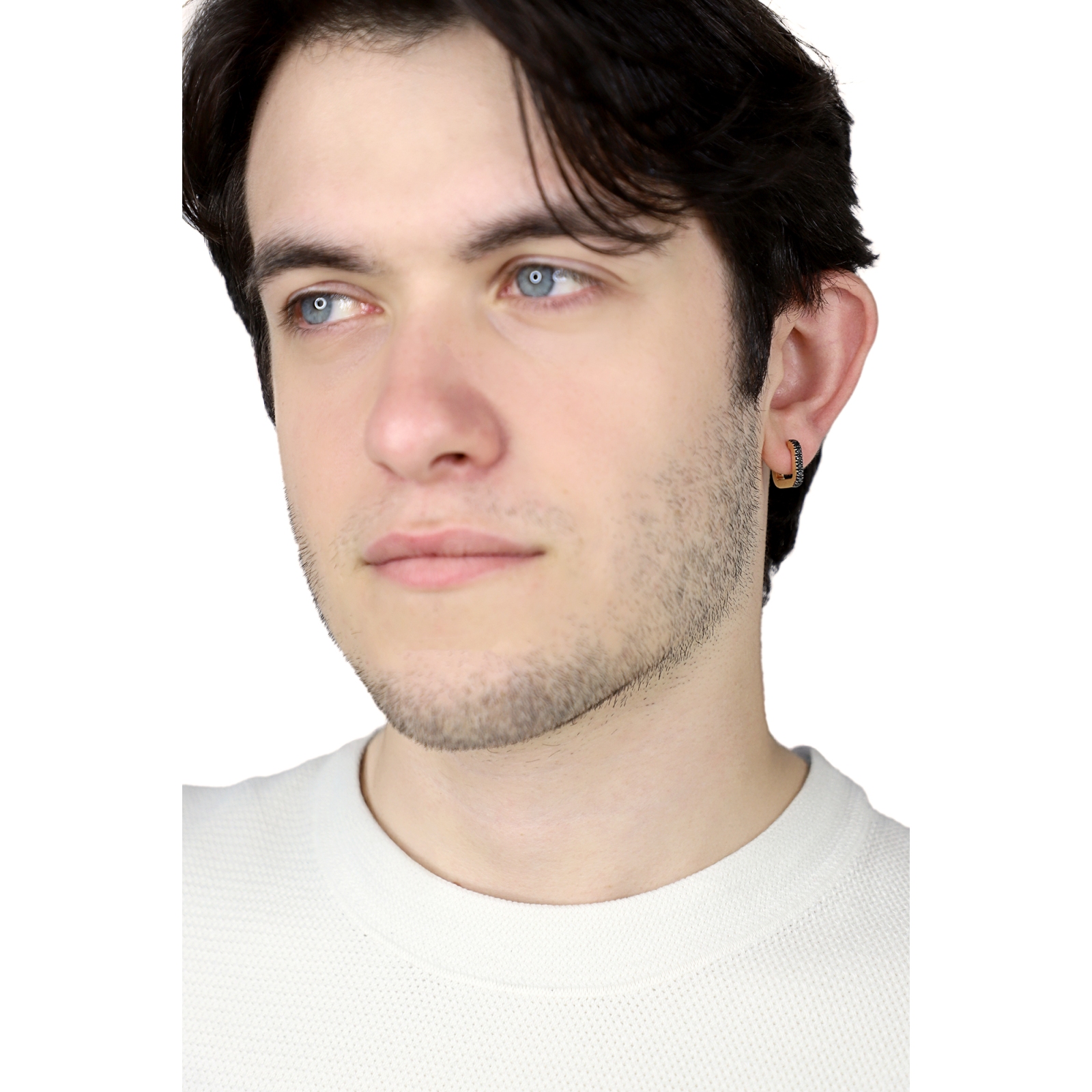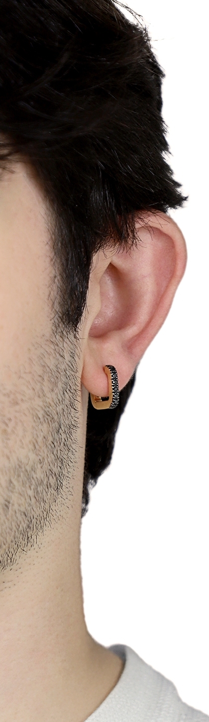 Pendiente único en oro amarillo 18k con fila de diamantes negros