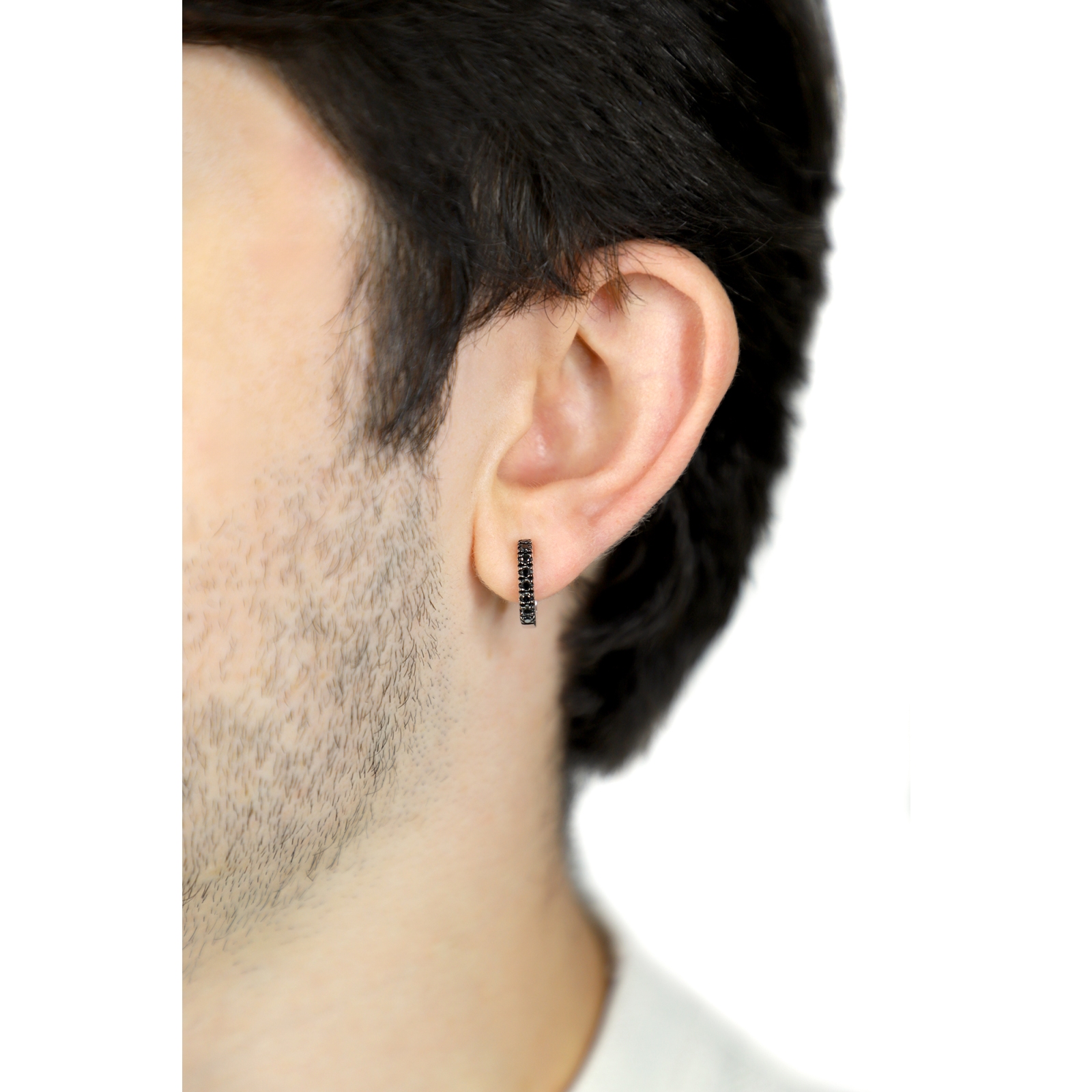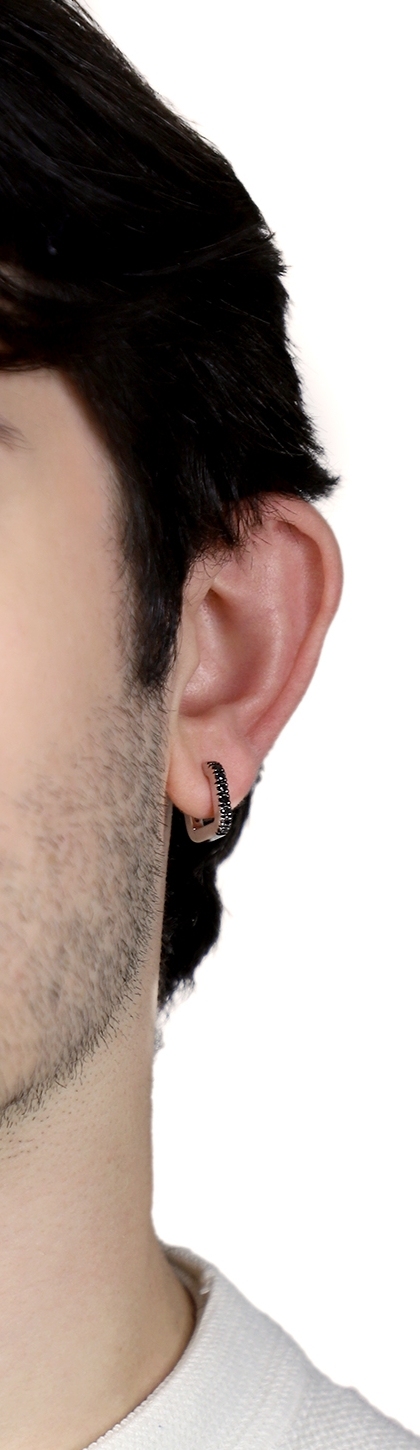 Pendiente único rectangular en oro blanco 18k con diamantes negros