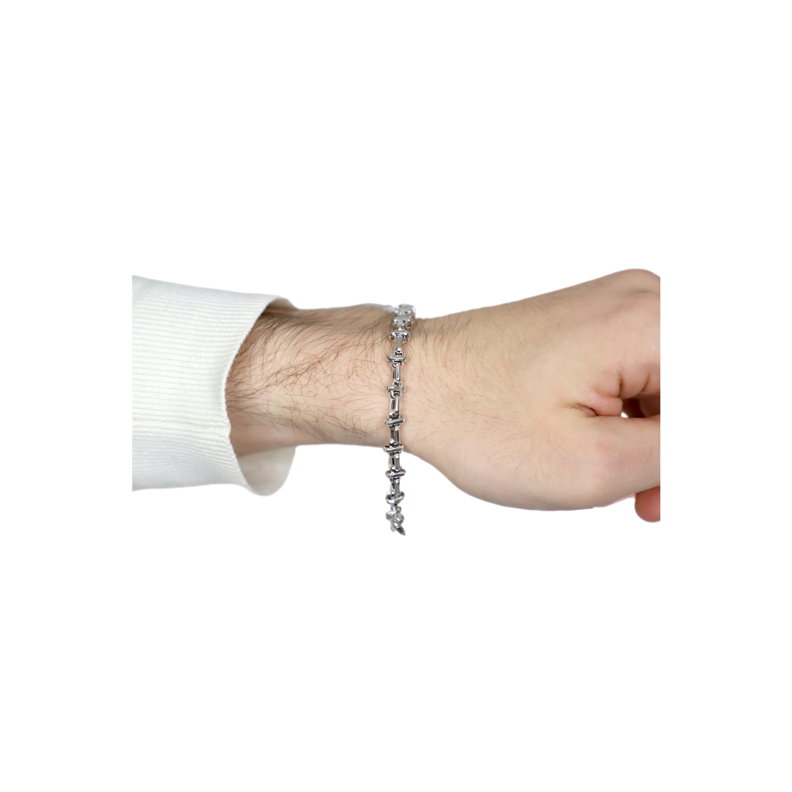 Pulsera de hombre en oro blanco 18k con diseño fantasía, 21 cm. Un accesorio moderno y elegante, perfecto para uso diario o ocasiones especiales.