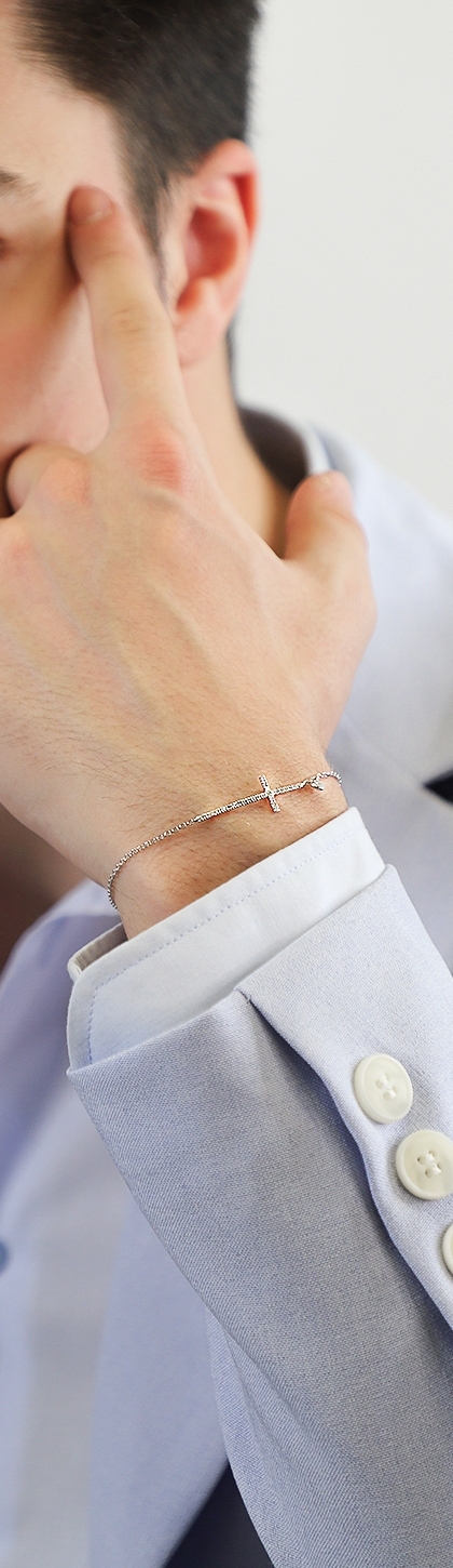 Pulsera cruz oro blanco 750 y diamantes blancos