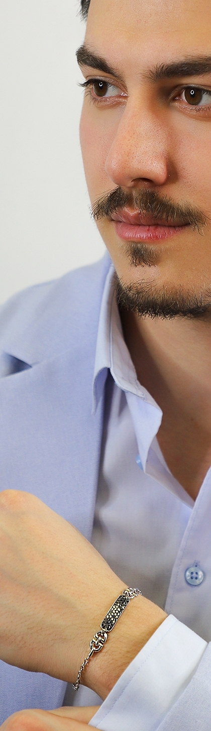 Pulsera en oro blanco 18k con barra y circonitas negras