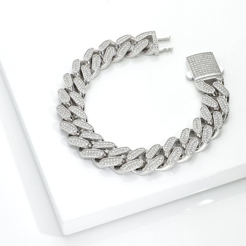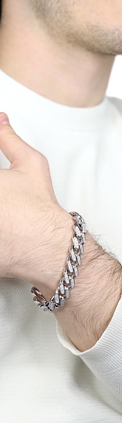 Pulsera Cuban link en oro blanco de 18k con diamantes