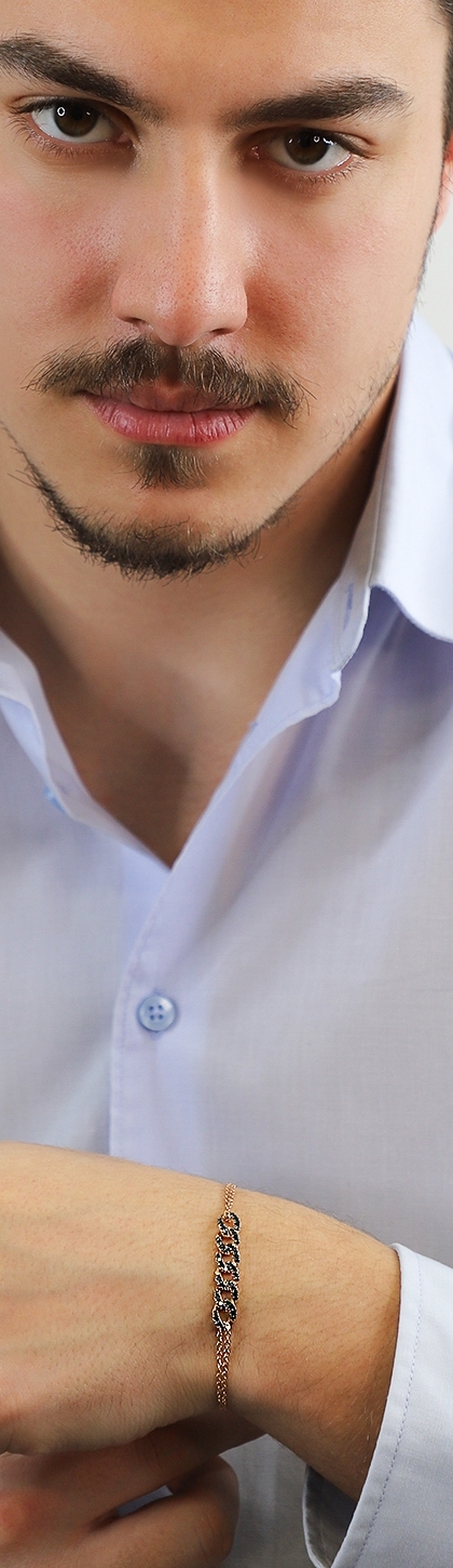 Pulsera cubana 6 eslabones oro rosa 18k con diamantes negros