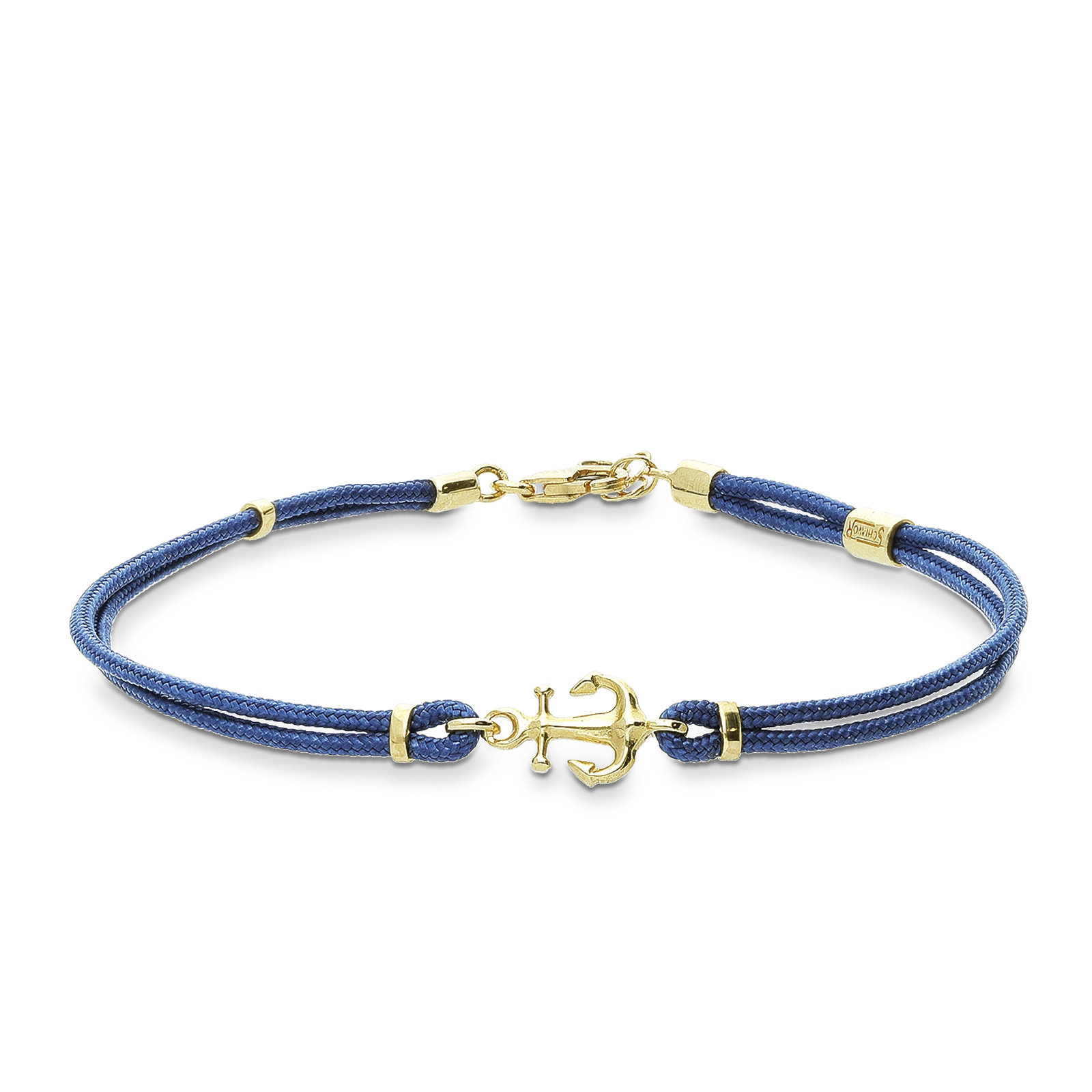 Pulsera cuerda azul con charm ancla en oro amarillo 18k