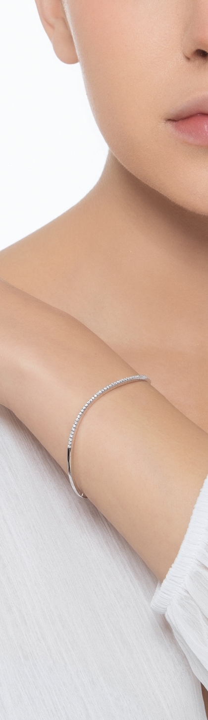 Pulsera semirrígida de diamantes en oro blanco de 18 quilates
