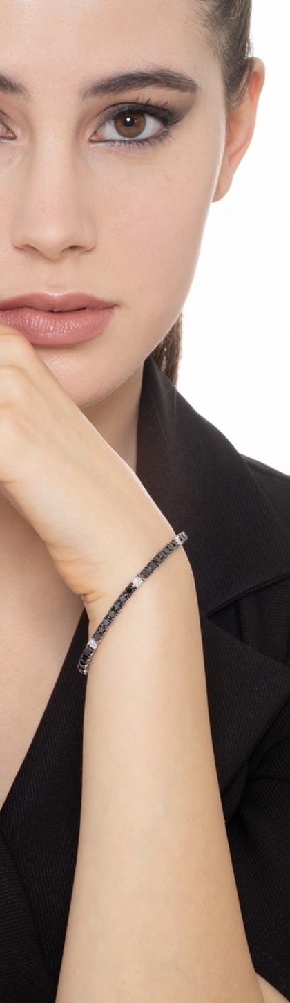 Pulsera de tenis en oro blanco 18k con diamantes negros alternados con diamantes
