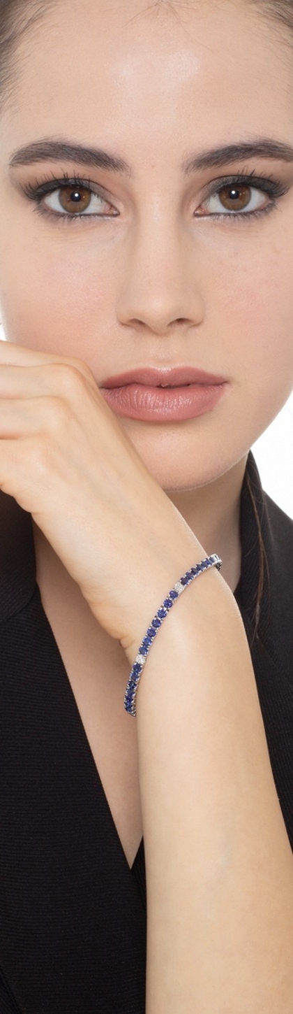 Pulsera oro blanco de 18K con zafiros azules y brillantes