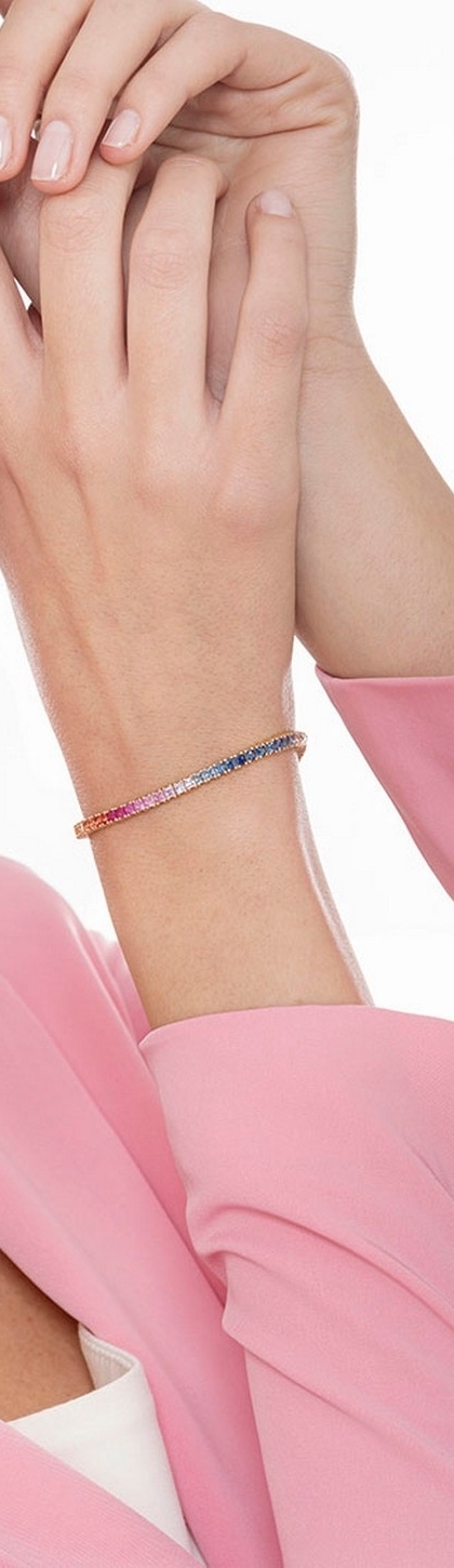 Pulsera riviera de hilo en oro amarillo de 18k con zafiros multicolor