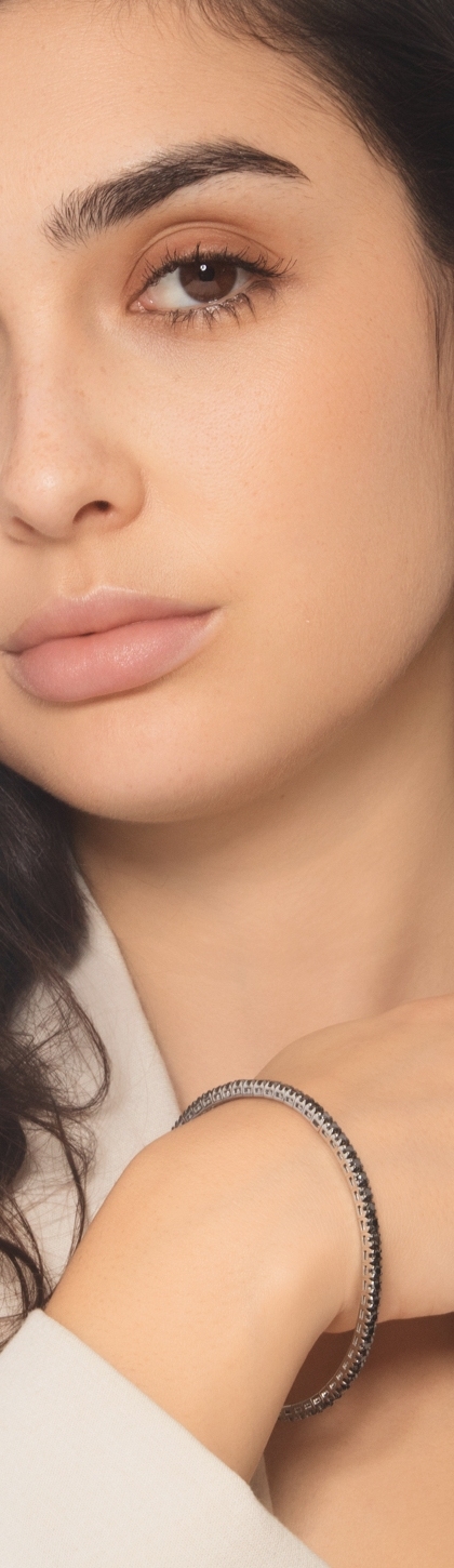 Pulsera riviera elastica en oro blanco 18k con diamantes negros