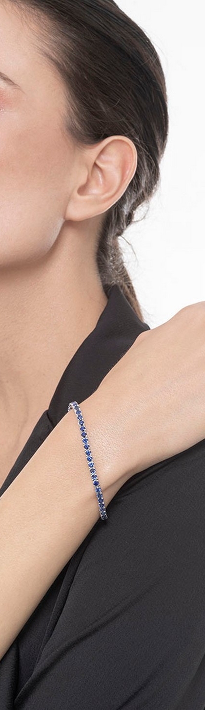 Pulsera tenis de oro blanco de 18 quilates con zafiro azul