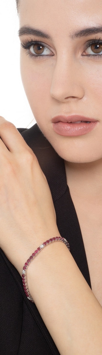 Pulsera tenis oro blanco 18 quilates con rubíes y diamantes