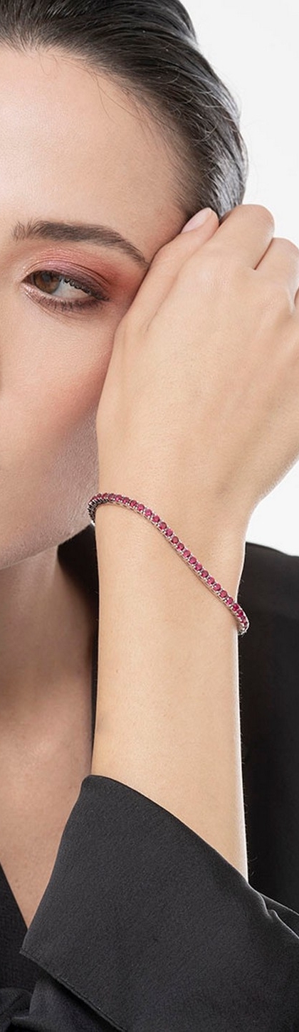 Pulsera Tennis con Rubíes con garras en Oro Blanco de 18k