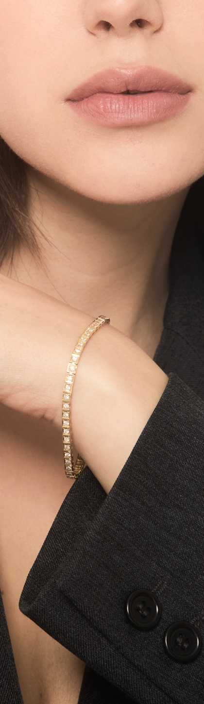 Pulsera Tennis cuadrada en oro amarillo de 18 quilates con diamantes talla brillante