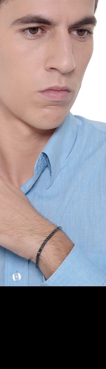 Pulsera tennis cuadrada en oro blanco 18k con diamantes negros