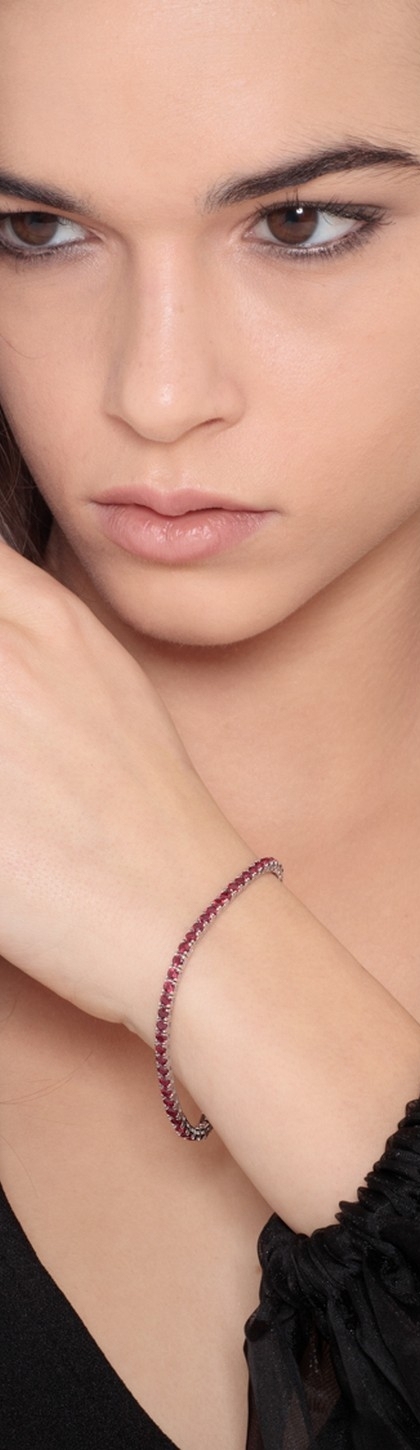 Pulsera tennis cuadrada en oro blanco de 18k con rubíes