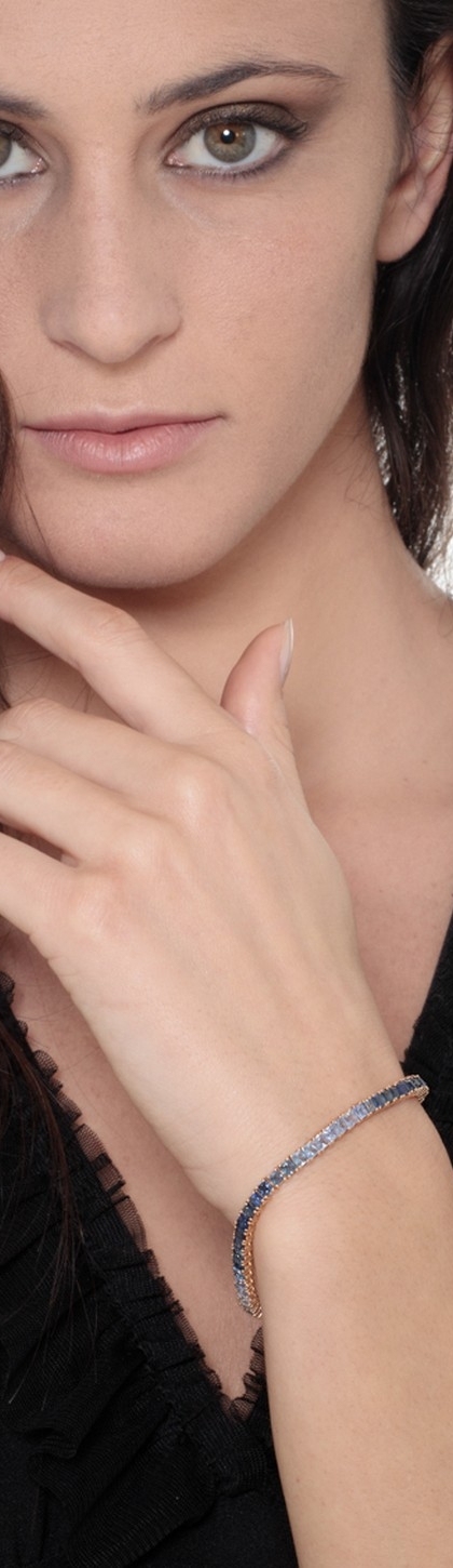 Pulsera tennis de hilo en oro rosa 18k con zafiros multicolor azul