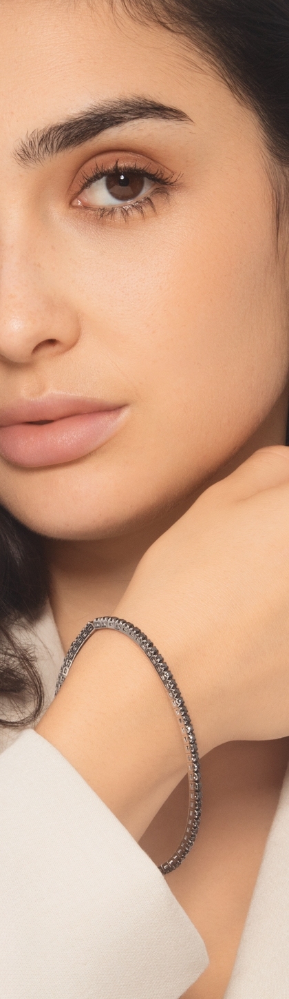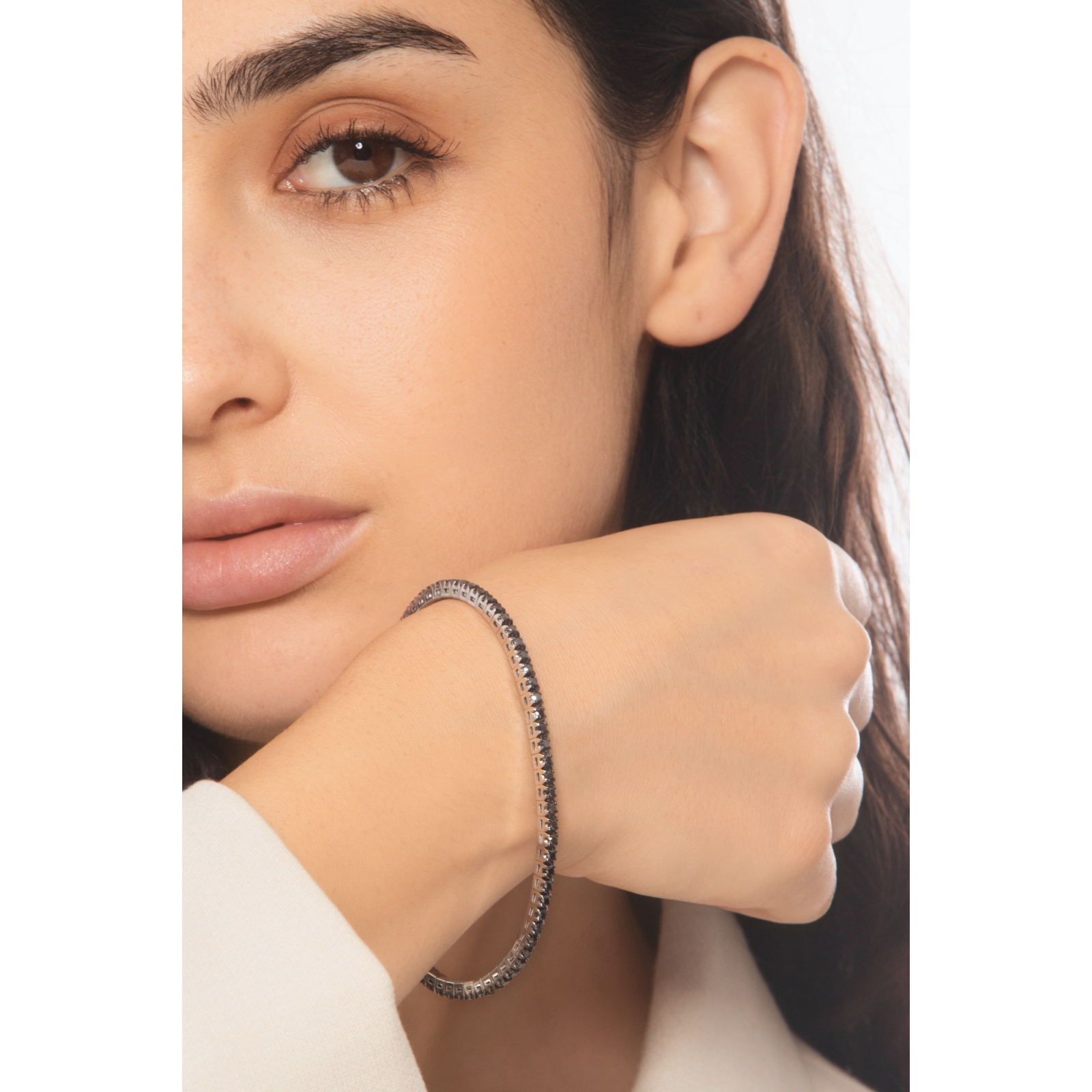 Pulsera tennis elastica con diamantes negros en oro blanco 750