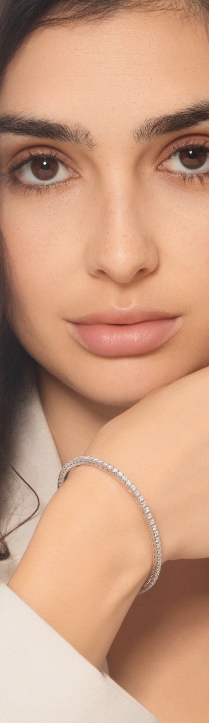 Pulsera tennis elastica en oro blanco 18k con diamantes