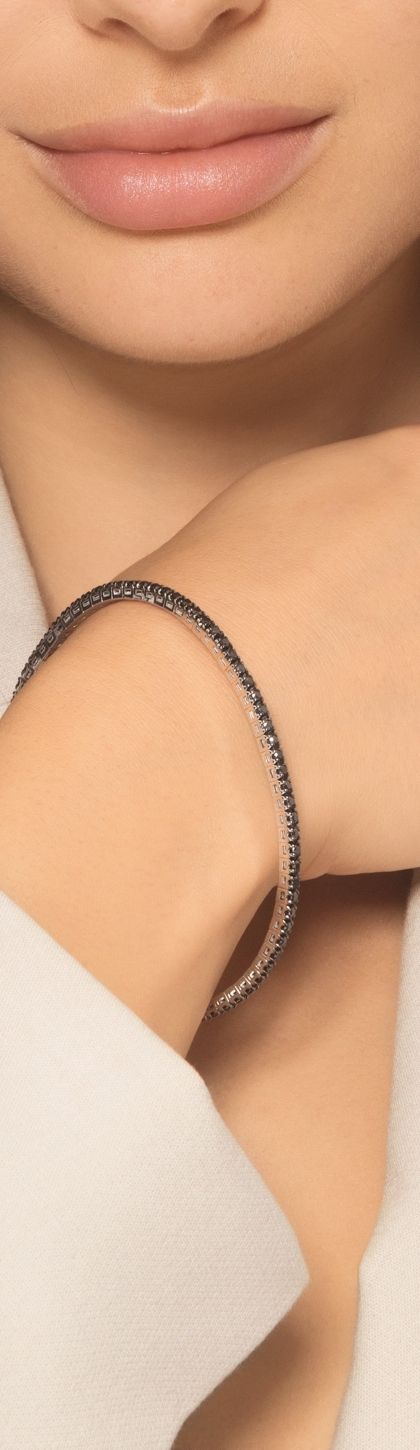 Pulsera tennis elastica en oro blanco de 18k con diamantes negros