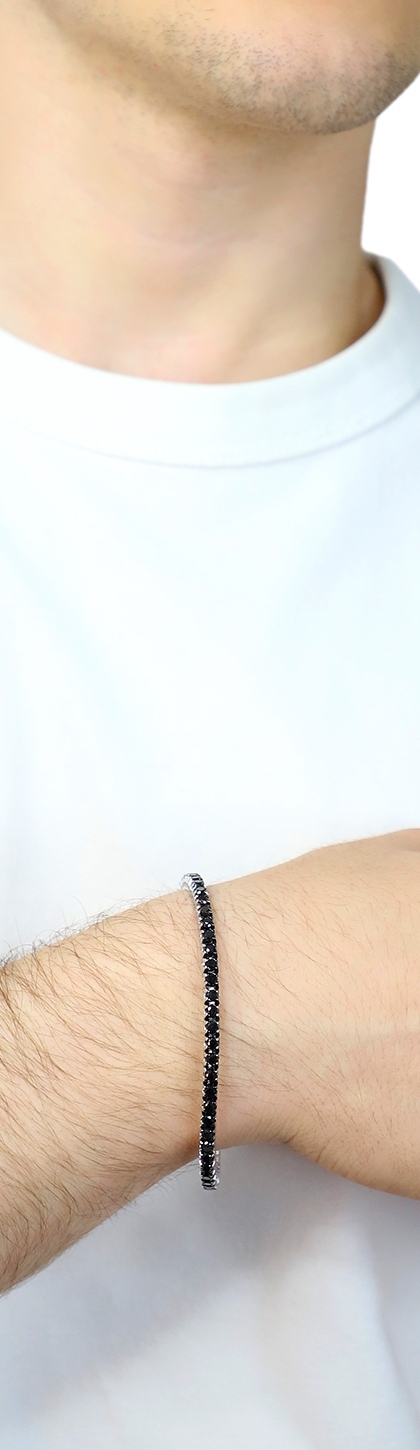 Pulsera tennis elástica con diamantes negros en oro blanco 750