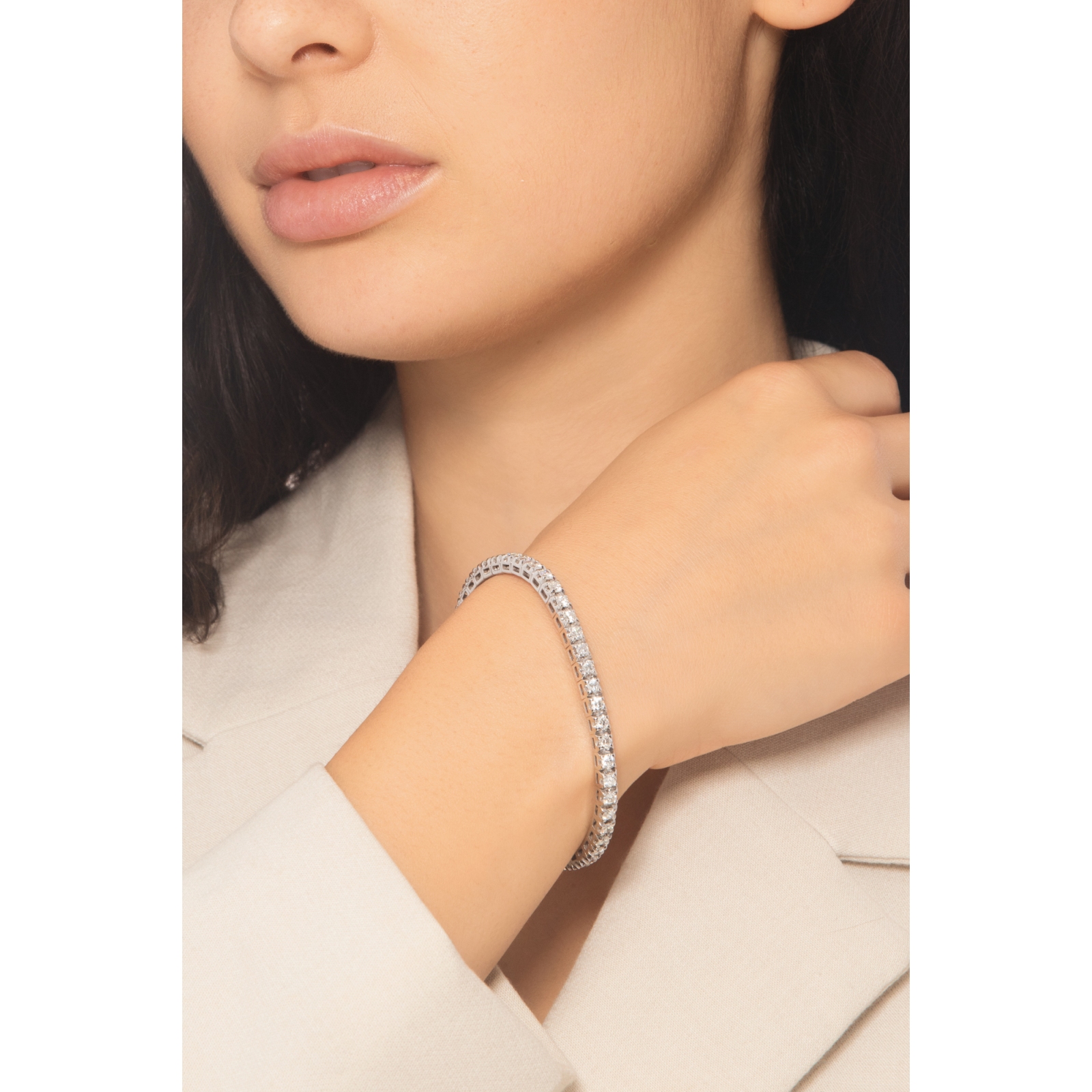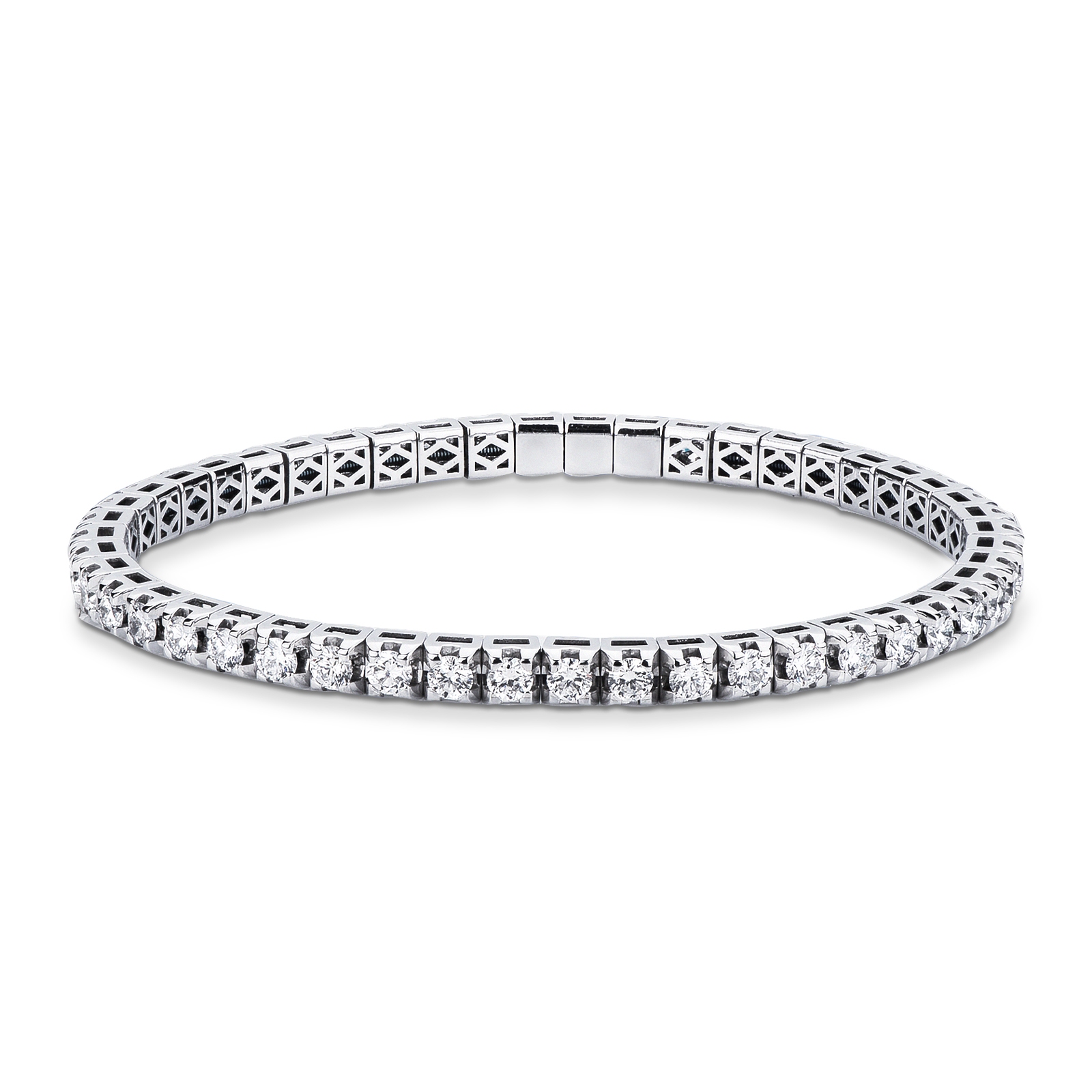 Pulsera tennis elástica en oro blanco 18k con diamantes talla brillante
