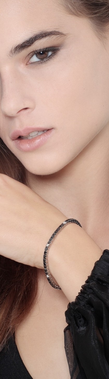 Pulsera Tennis en oro blanco 18 quilates con diamantes negros y blancos