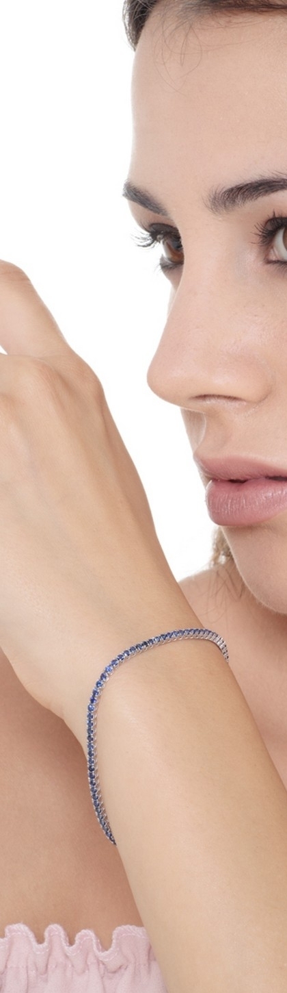 Pulsera Tennis en oro blanco 18 quilates con zafiros azules
