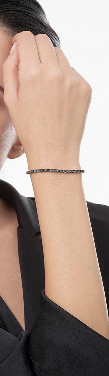 Pulsera Tennis en oro blanco 18k diamantes negros en garras brunidas