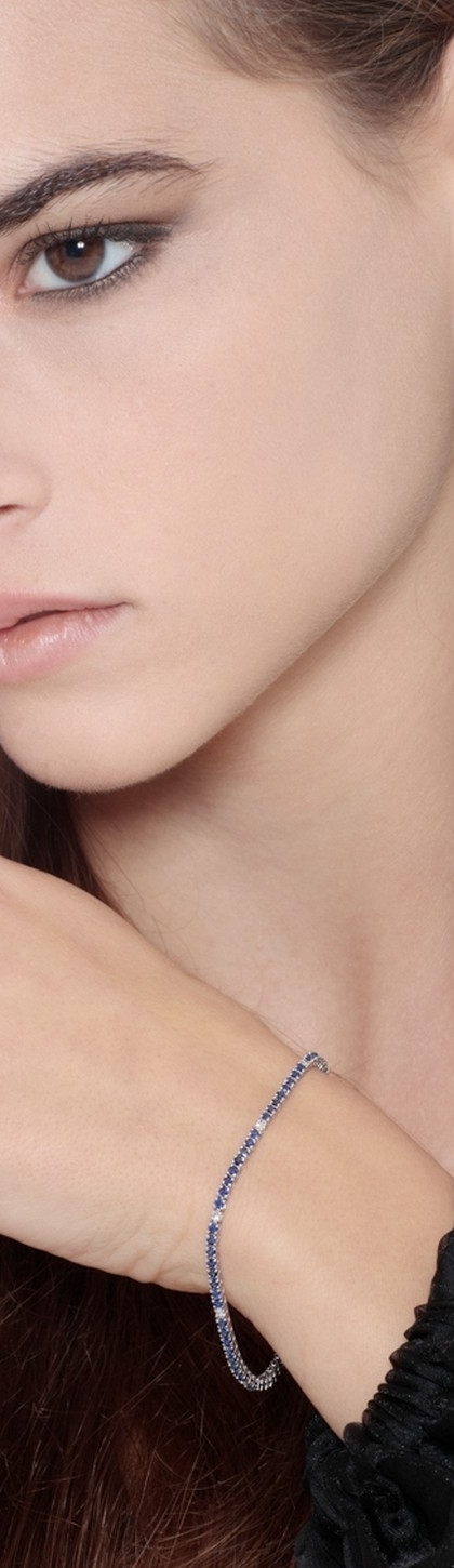Pulsera Tennis en oro blanco de 18k con diamantes y zafiros azules