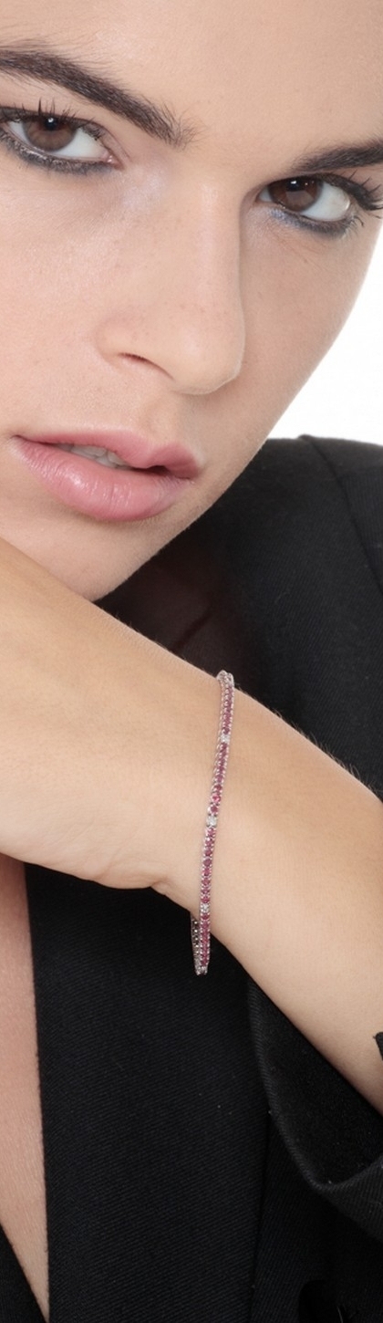 Pulsera Tennis en oro blanco de 18k con rubíes y diamantes