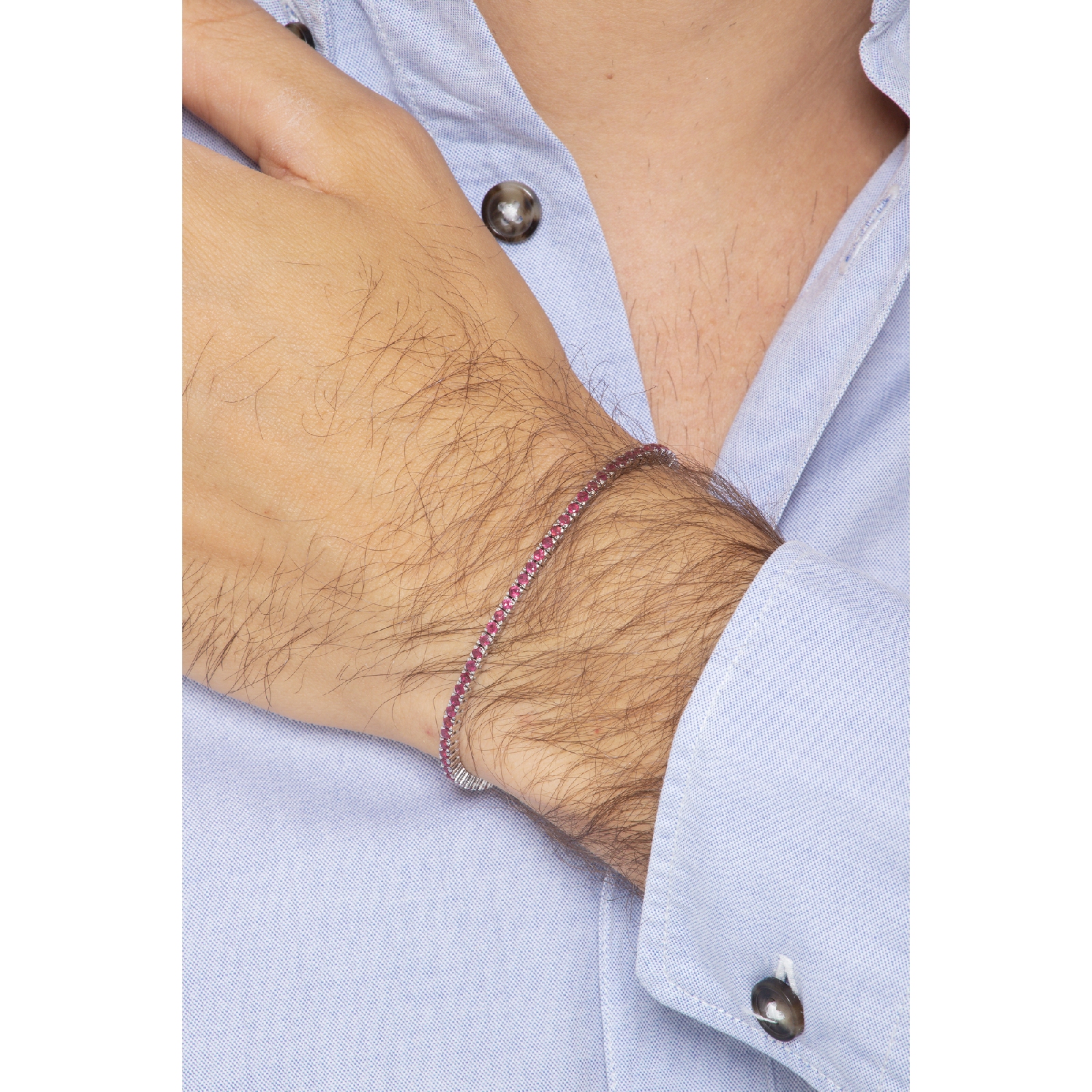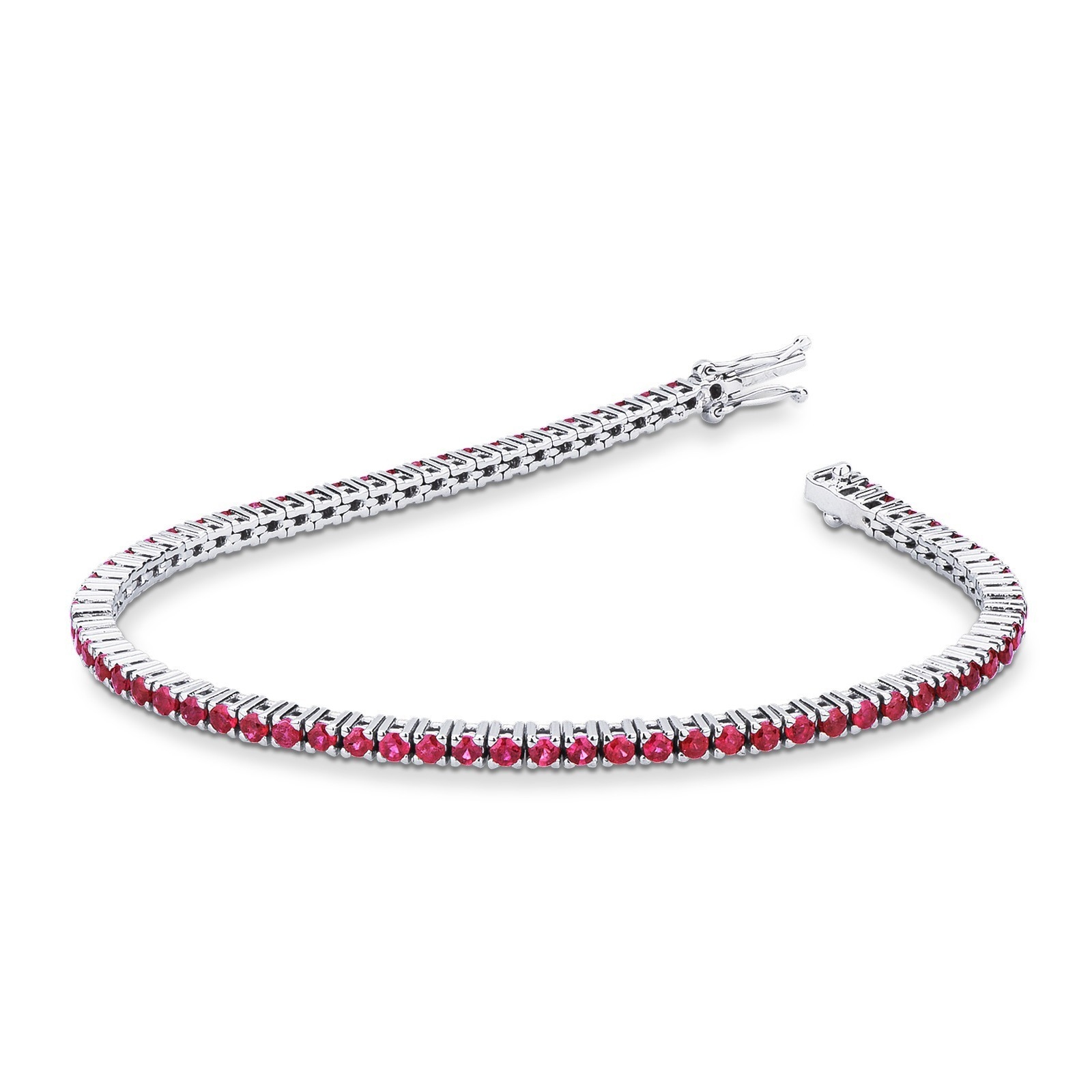 Pulsera Tennis fina en oro blanco de 18k con rubíes