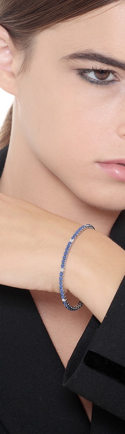 Pulsera Tennis Oro Blanco 18k zafiro azul intenso