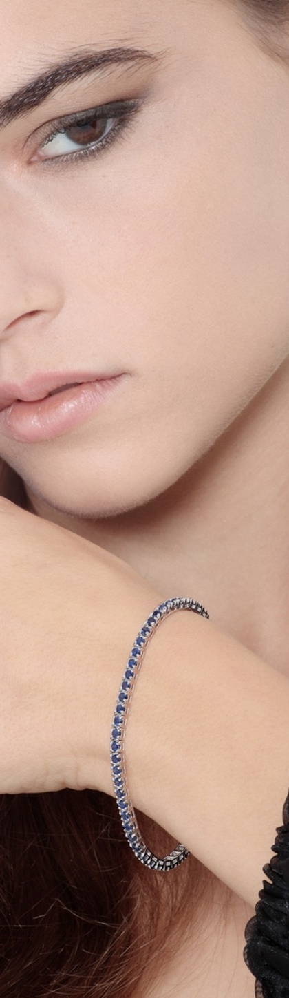 Pulsera Tennis piramidal en oro blanco 18 quilates con zafiros azules