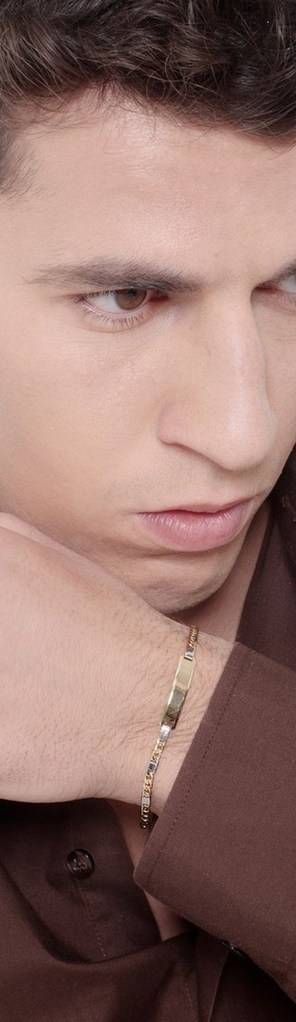 Pulsera con placa en oro amarillo y blanco 18k, 18 cm