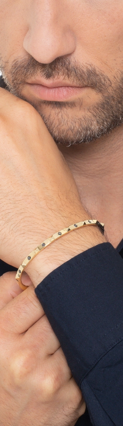 Brazalete hombre rígido en oro amarillo 18k con diamantes negros