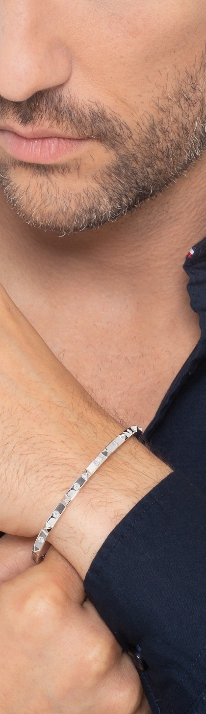 Brazalete hombre rígido en oro blanco 18k diamantes