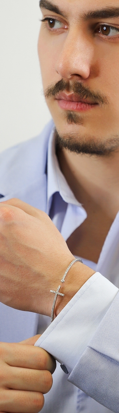Pulsera flexible de oro blanco de 18 quilates con cruz de diamantes.