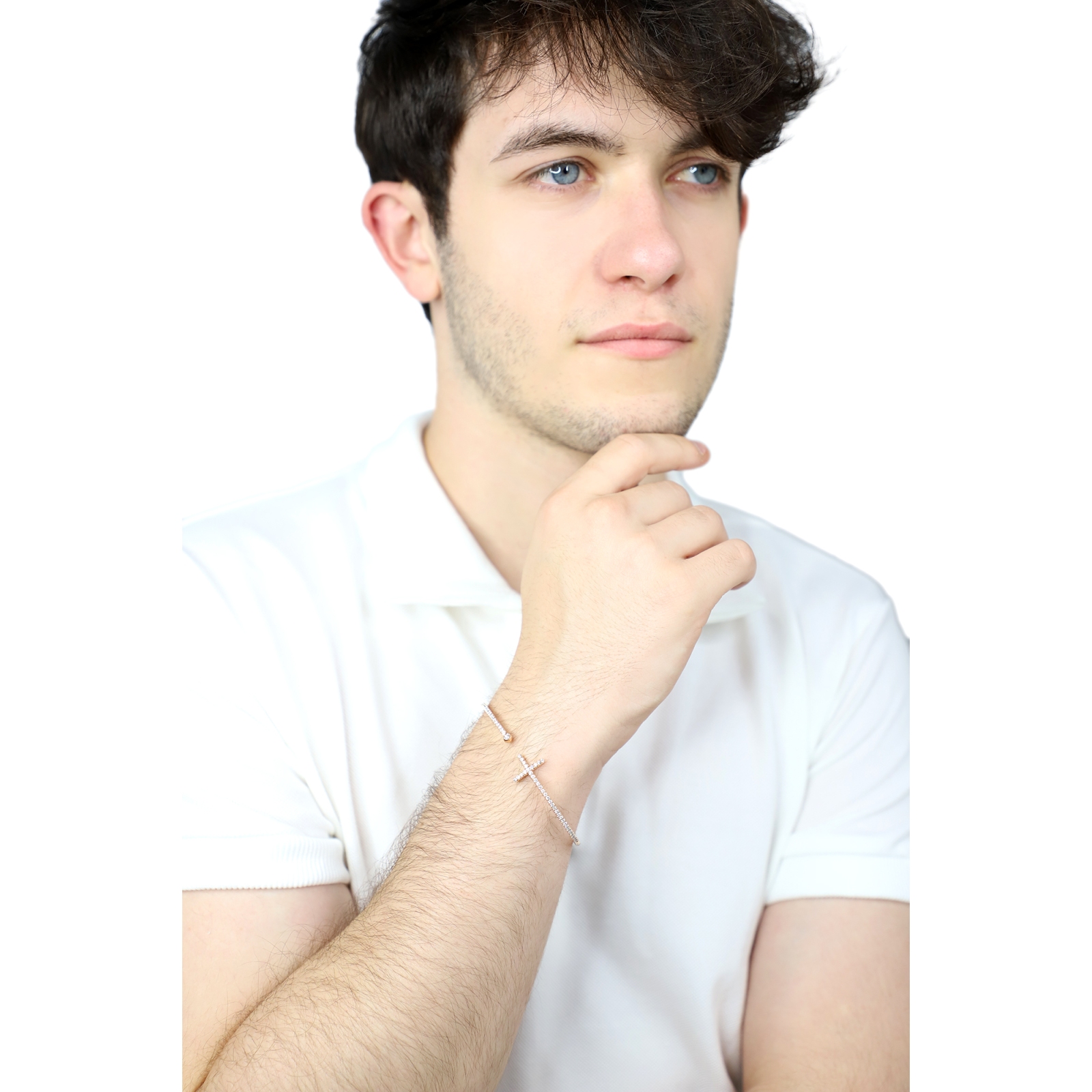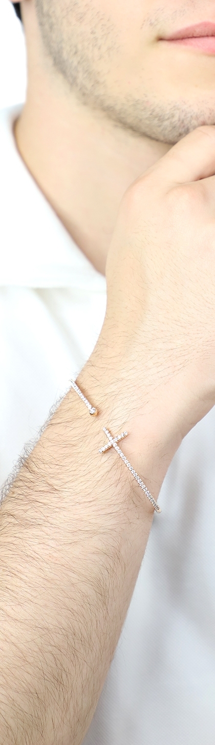 Pulsera flexible de oro rosa de 18 quilates con cruz de diamantes