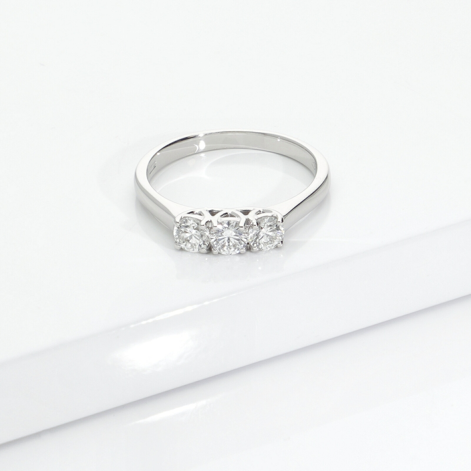 Alianza con 3 diamantes redondos 0,60 quilates y oro blanco 18k