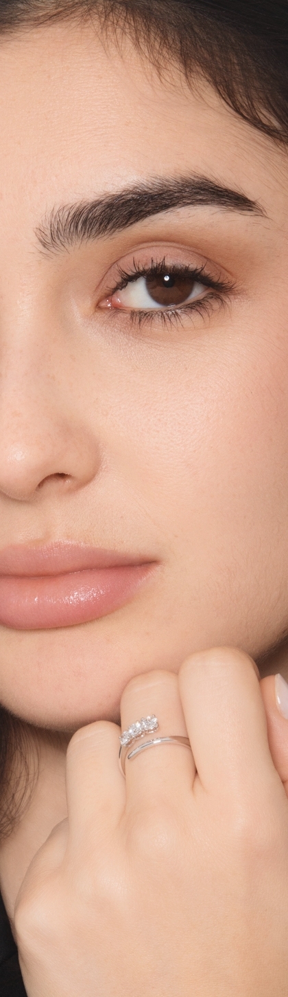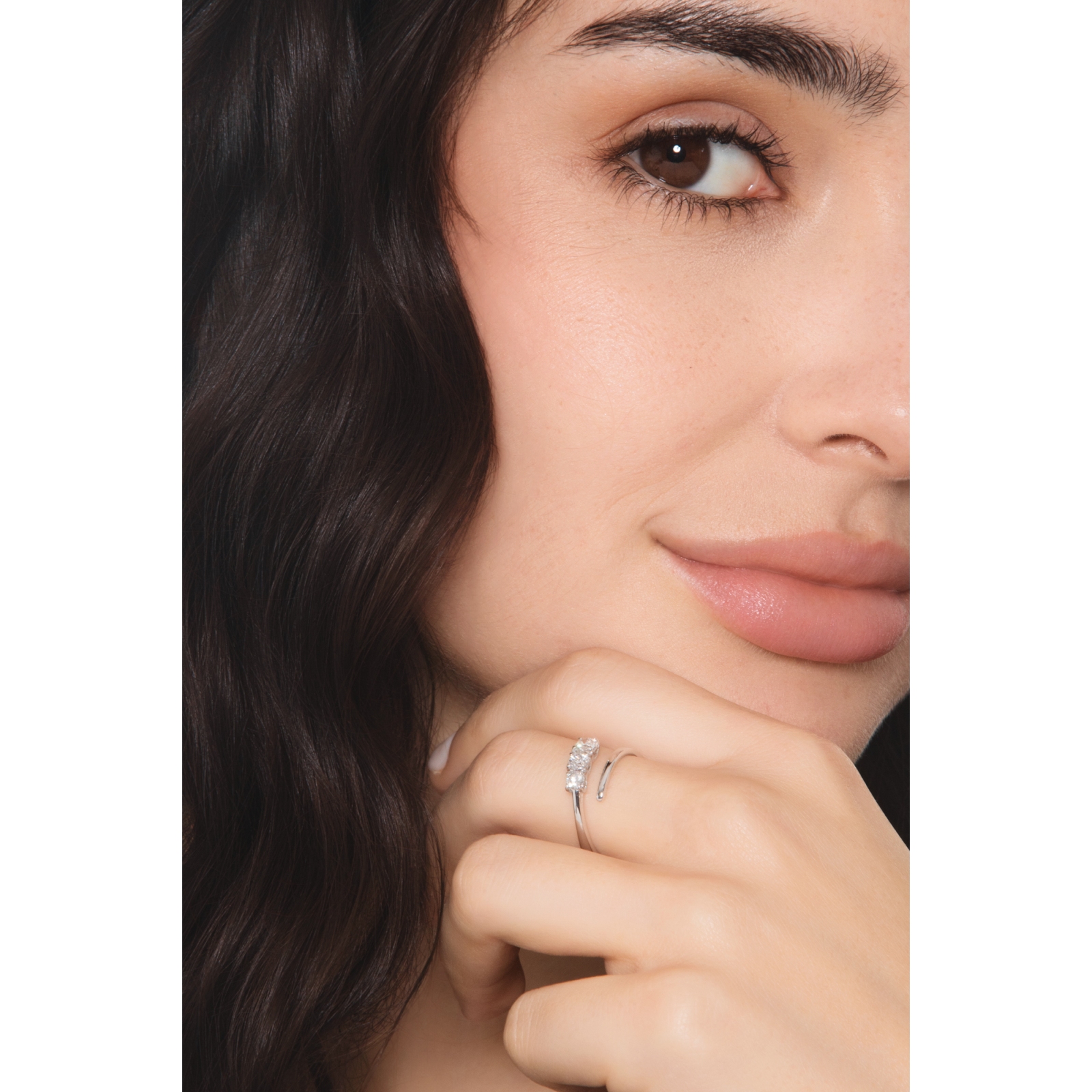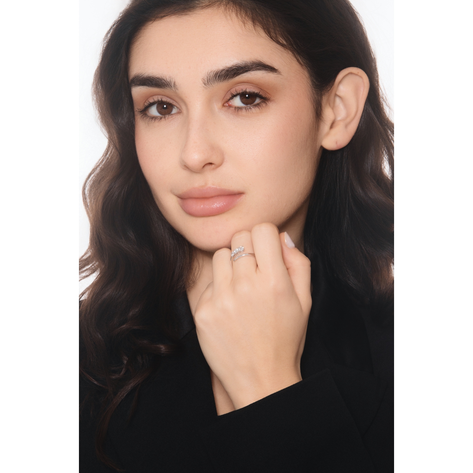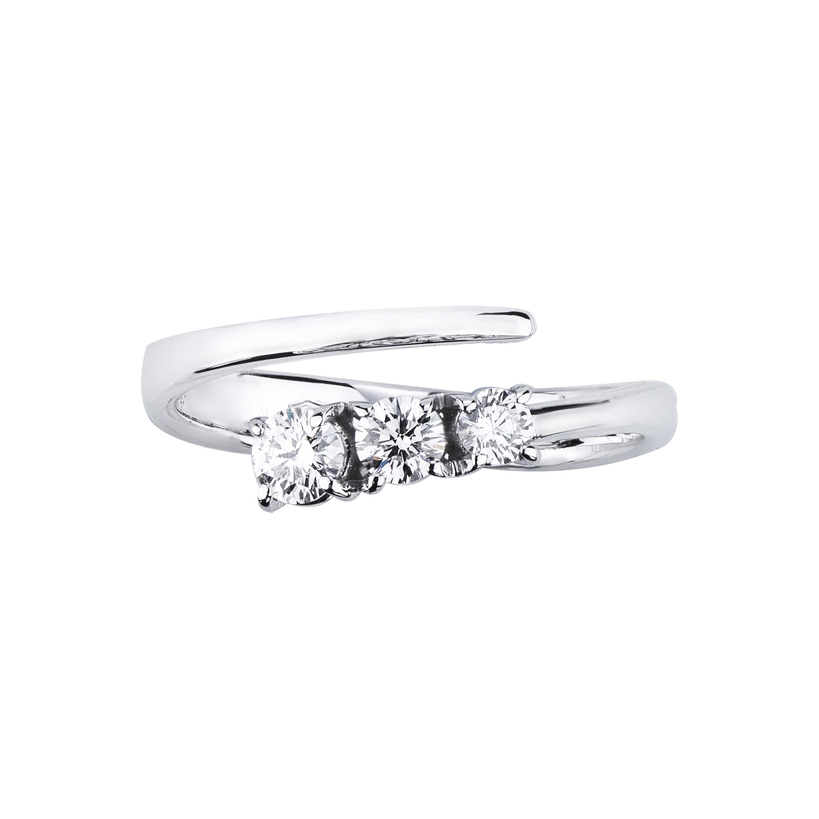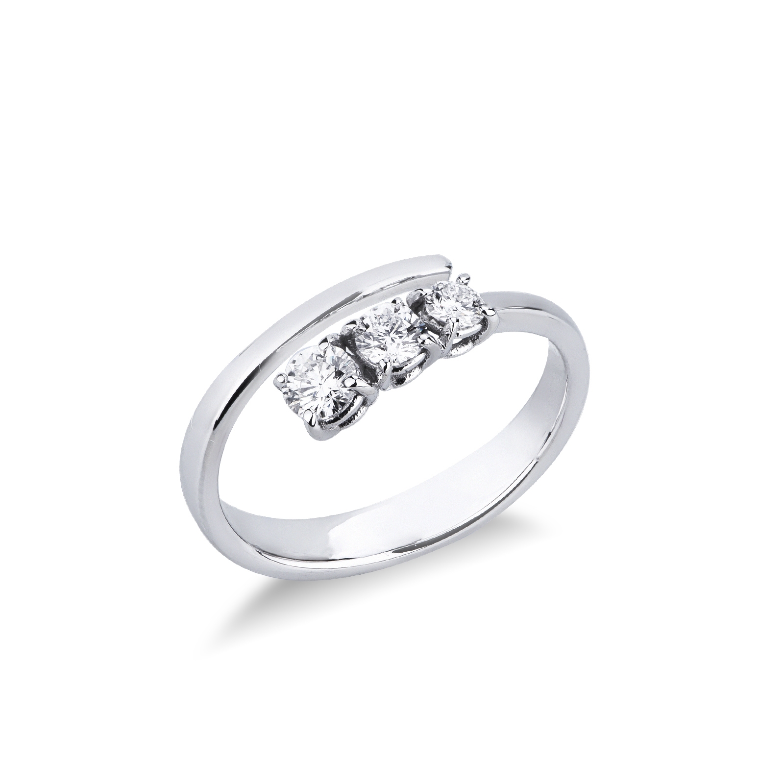 Anillo contrarié realizado en oro blanco de 18k con 3 diamantes