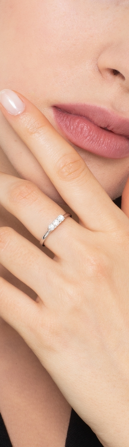 Anillo de compromiso con 3 diamantes en oro blanco de 18 kilates