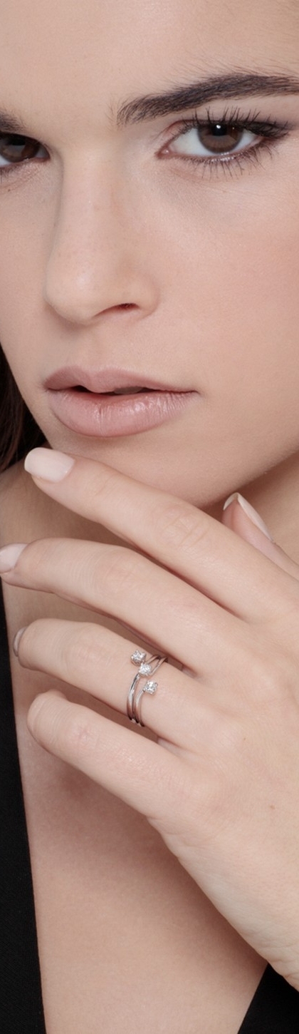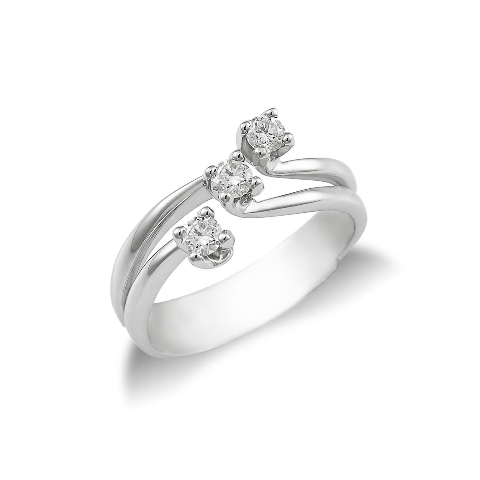 Anillo en oro blanco 18k con tres diamantes 0,30 ct
