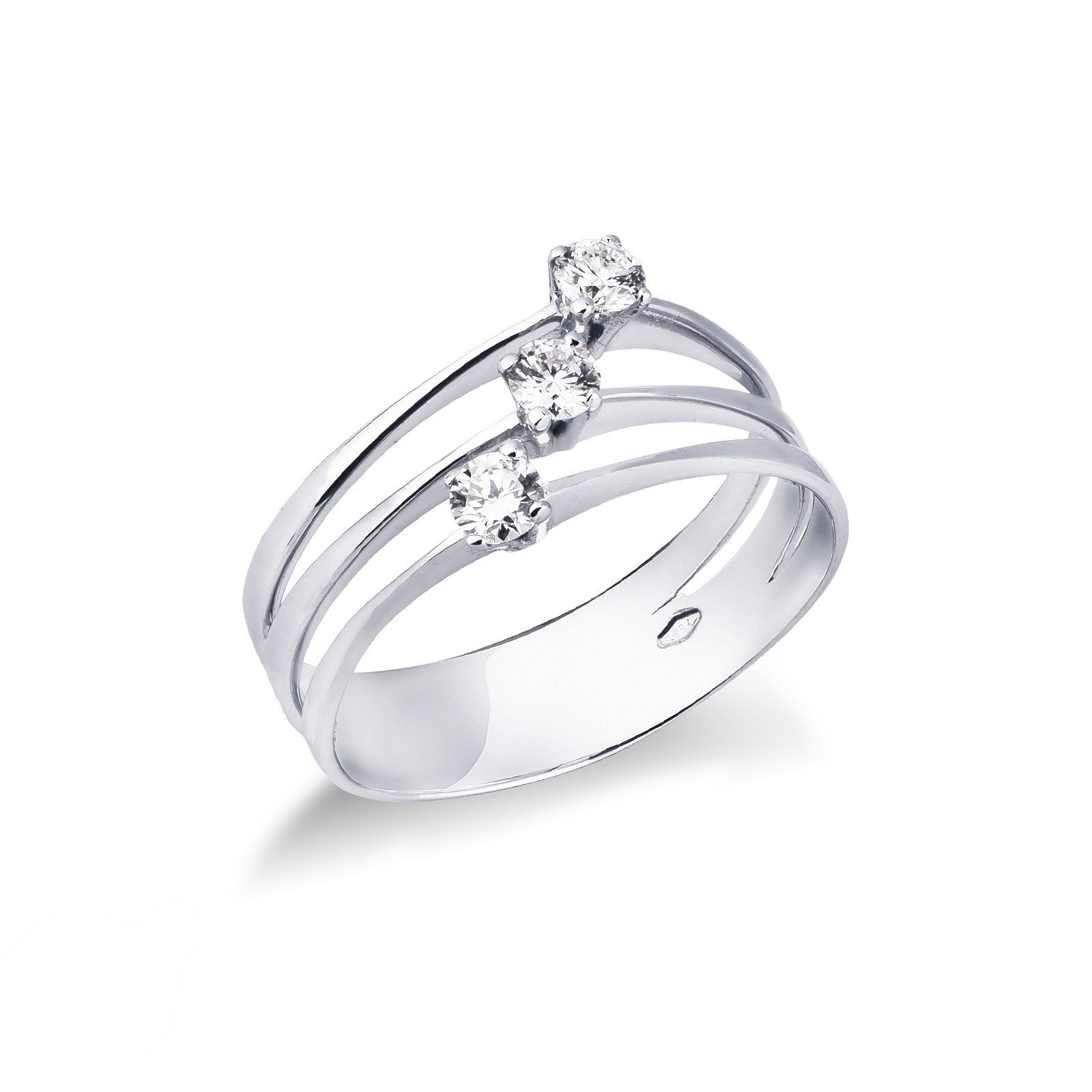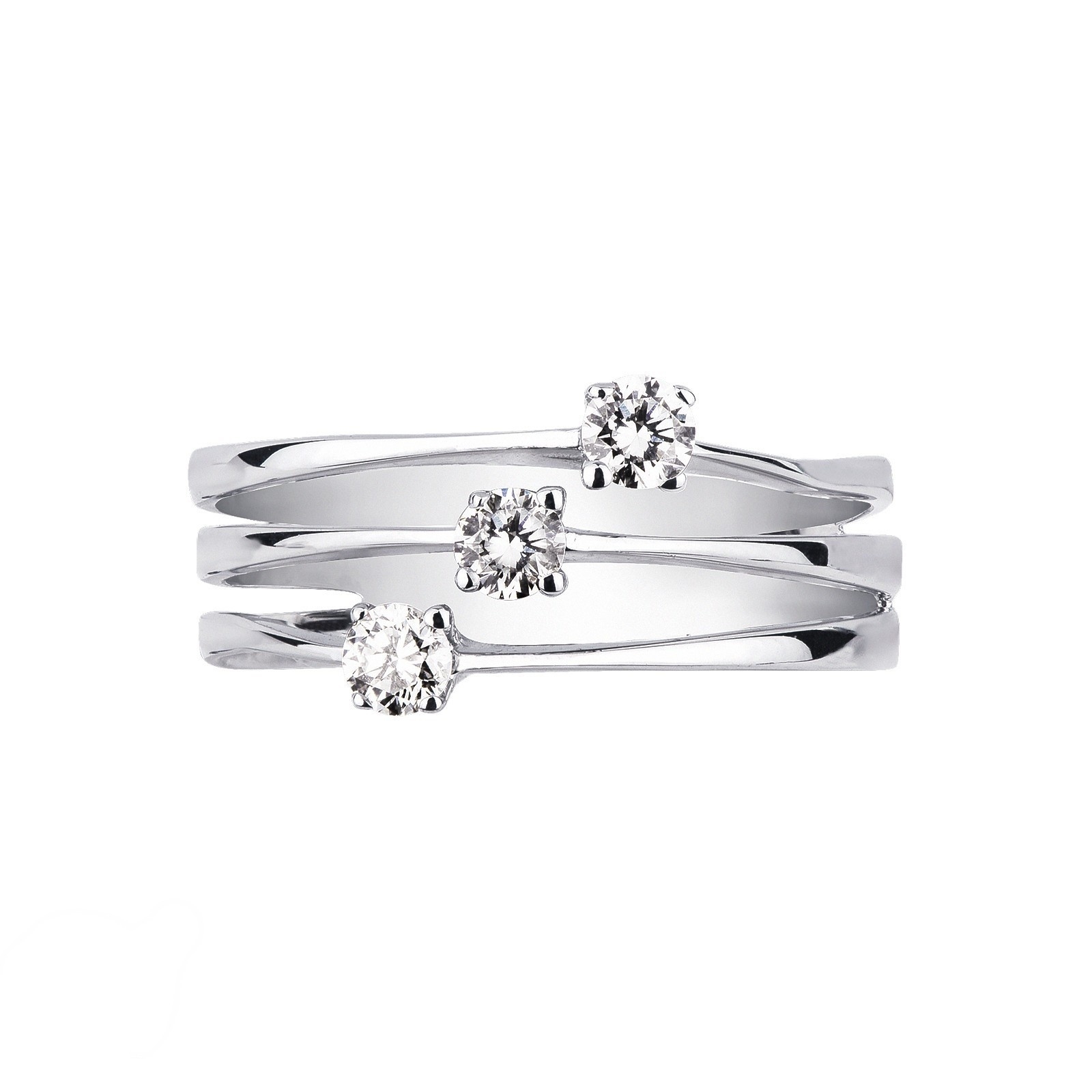 Anillo tres bandas abiertas en oro 18k con tres diamantes 0.30 ct