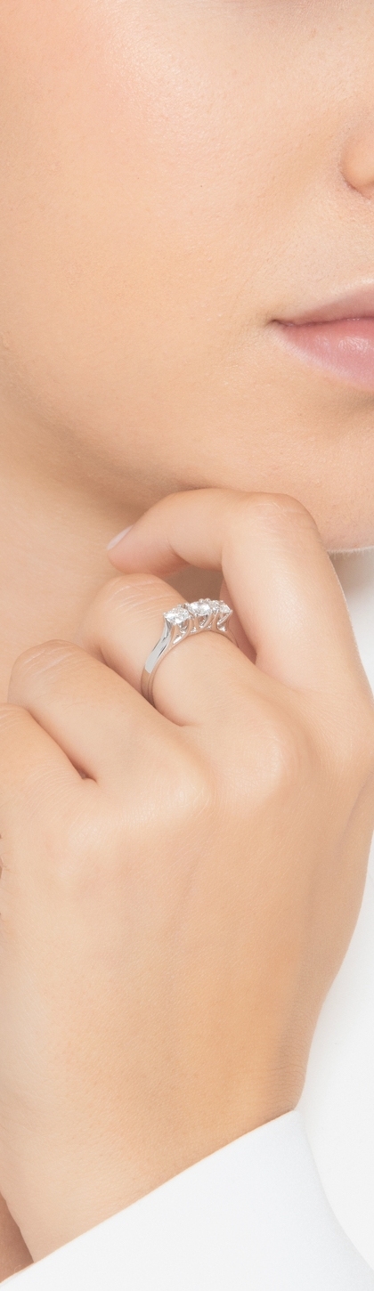 Anillo trilogía con brillantes 0,75 quilates en oro blanco de 18 kilates