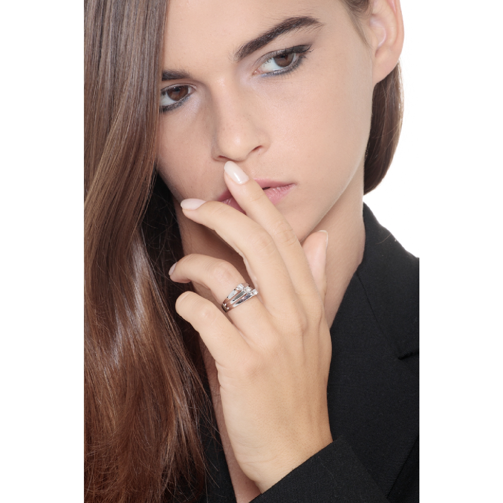Anillo trilogía para mujer en oro blanco 18k con diamantes ct. 0,24