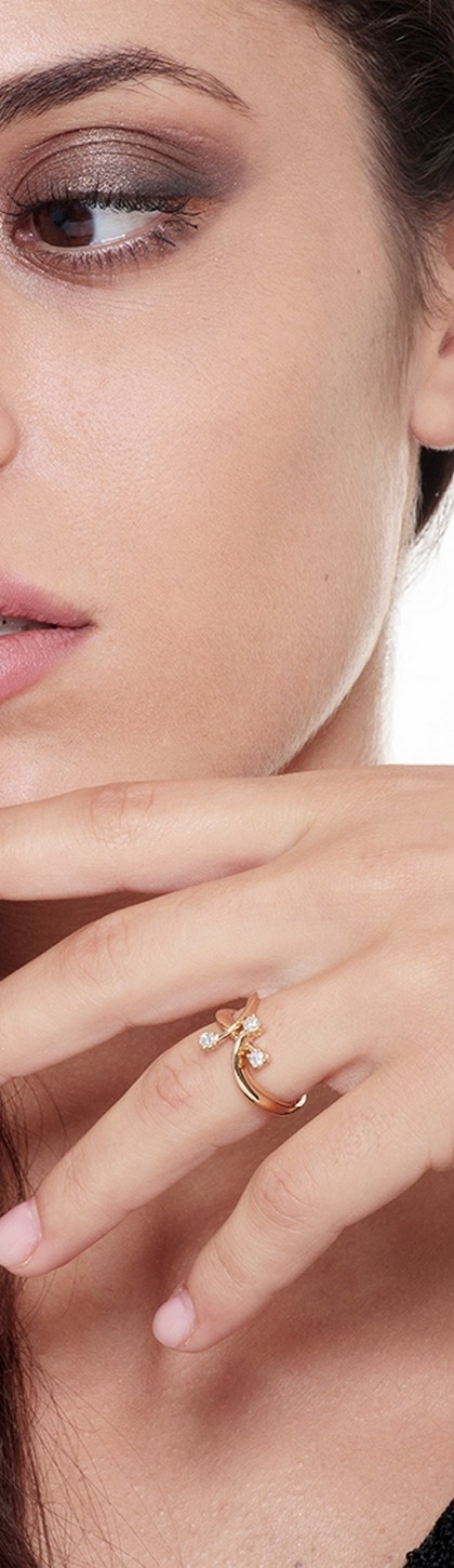 Anillo trilogy en oro amarillo 18k con diseño ondulado y diamantes
