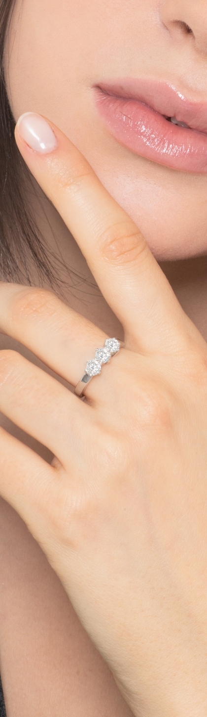 Anillo trilogy en oro blanco 18k con diamantes 0.90 ct