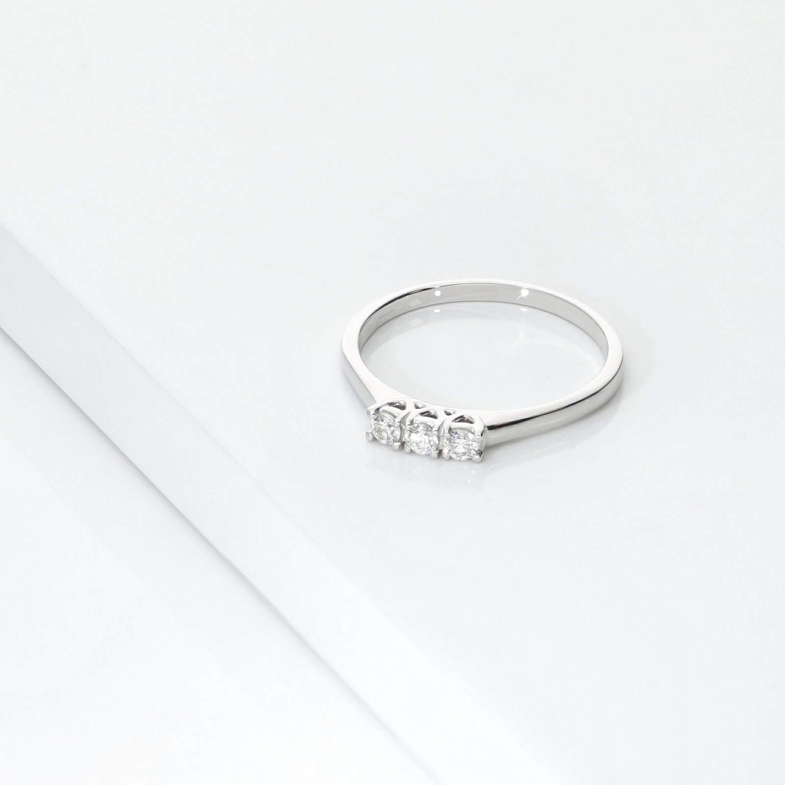 Anillo trilogy lineal en oro blanco 18k con diamantes 0.15 ct