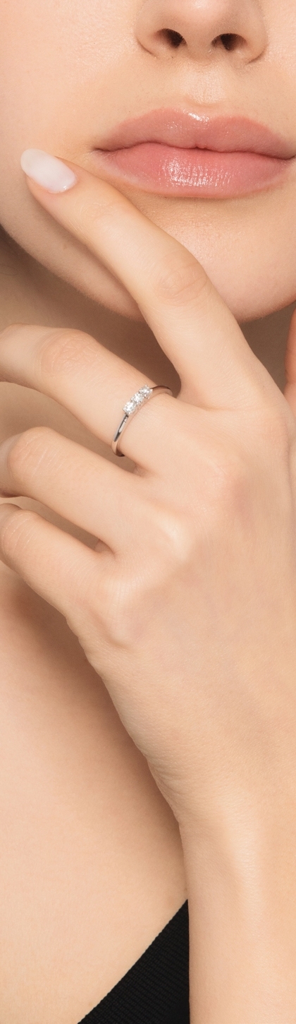 Anillo trilogy lineal en oro blanco 18k con diamantes 0,21 ct
